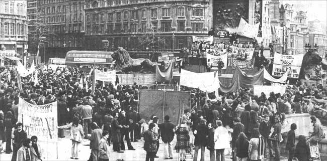 Wigan to London March rallies at Trafalgar Square. From the Workers Press