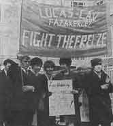 Picture: Lucas-CAV workers march against 60s wage freeze.
