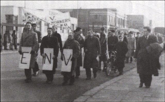 ENV march through Willesden, 1951-52. Peter Fryer, far right, was reporting for the Daily Worker. Bill is behind the young man with the bike. From: Lifelong Apprenticeship |